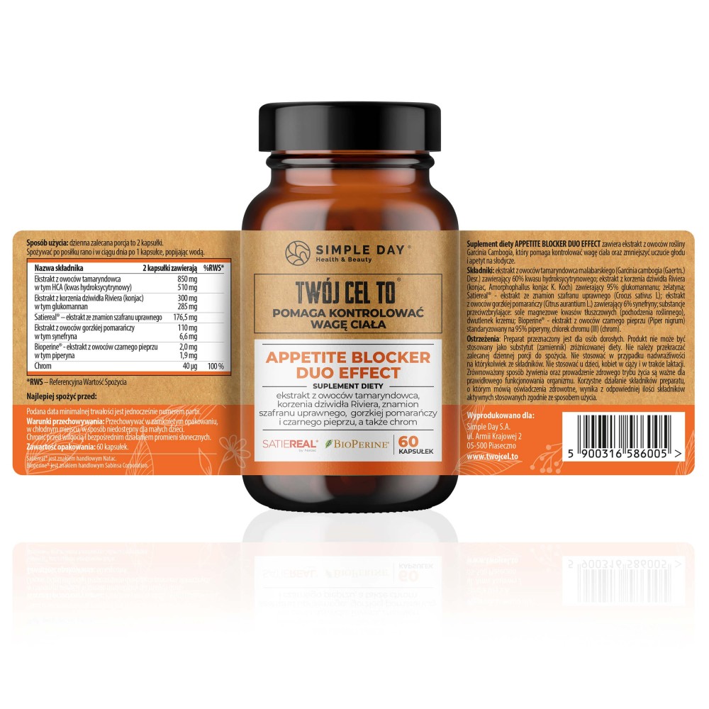 Appetite Blocker Duo Effect to naturalne wsparcie Twojej diety. Sięgnij po produkt, który łączy nowoczesną formułę z tradycyjną wiedzą o składnikach aktywnych. Zrób pierwszy krok ku lepszej kontroli apetytu i poczuj różnicę - wybierz Twój Cel To.