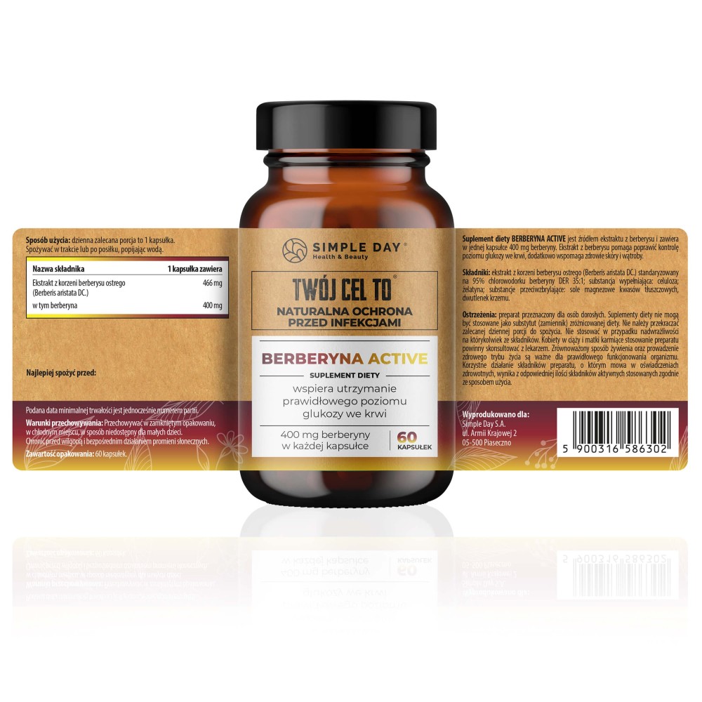 Berberyna Active to nie tylko suplement – to codzienny krok w stronę zdrowia, równowagi i świadomego życia. Pomaga utrzymać stabilny poziom cukru, wspiera metabolizm i detoksykację organizmu, poprawia wygląd skóry i ogólną energię życiową. Naturalna moc roślin, zamknięta w jednej kapsułce – dla tych, którzy chcą czuć się dobrze w swoim ciele.
