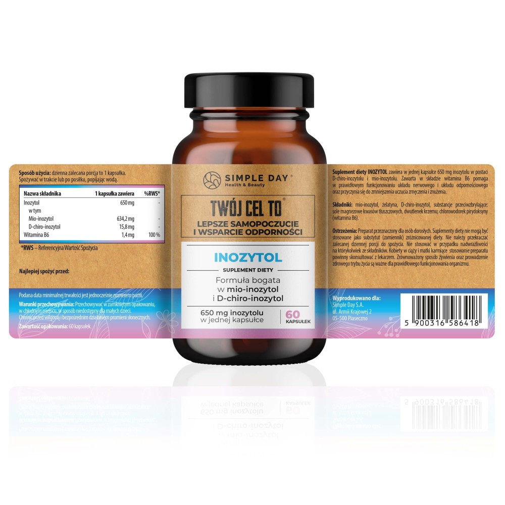 Nasz suplement zawiera połączenie dwóch form inozytolu: mio-inozytolu (634,2 mg) i D-chiro-inozytolu (15,8 mg), co czyni go dobrym wsparciem dla osób dbających o zdrowie.