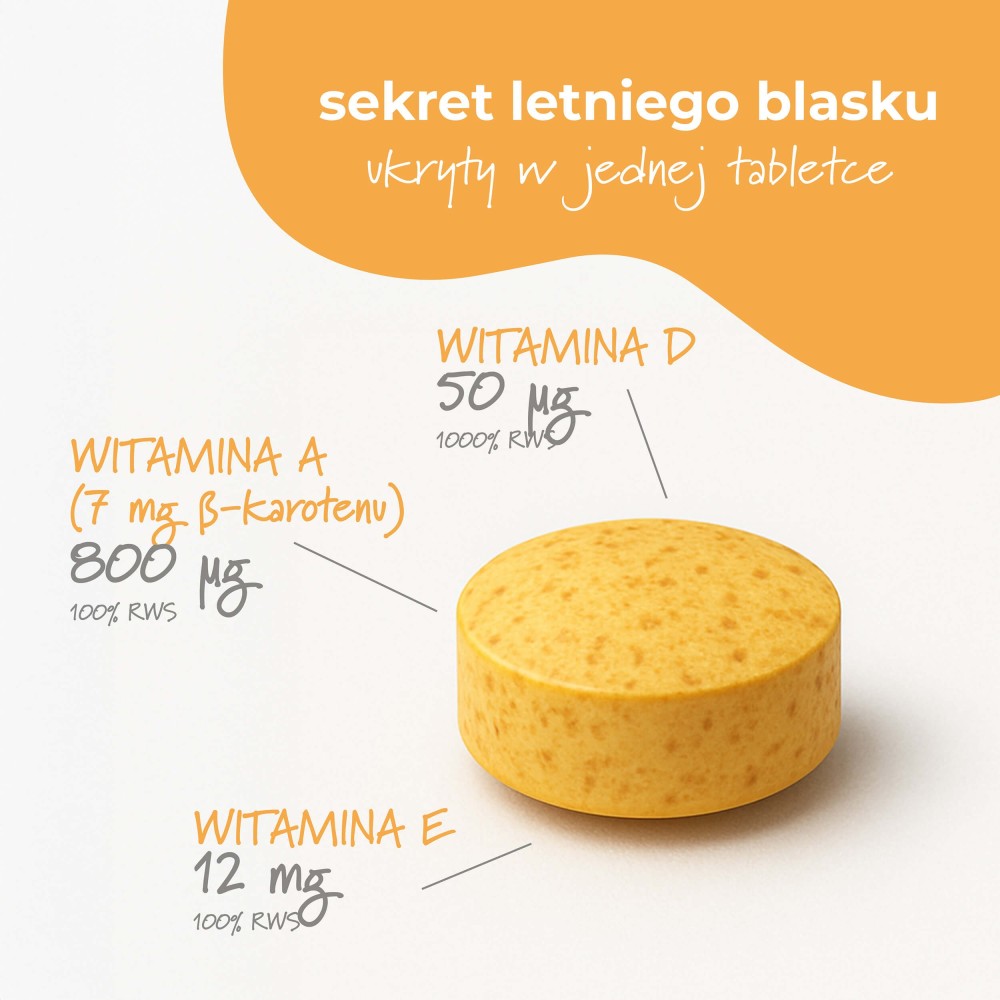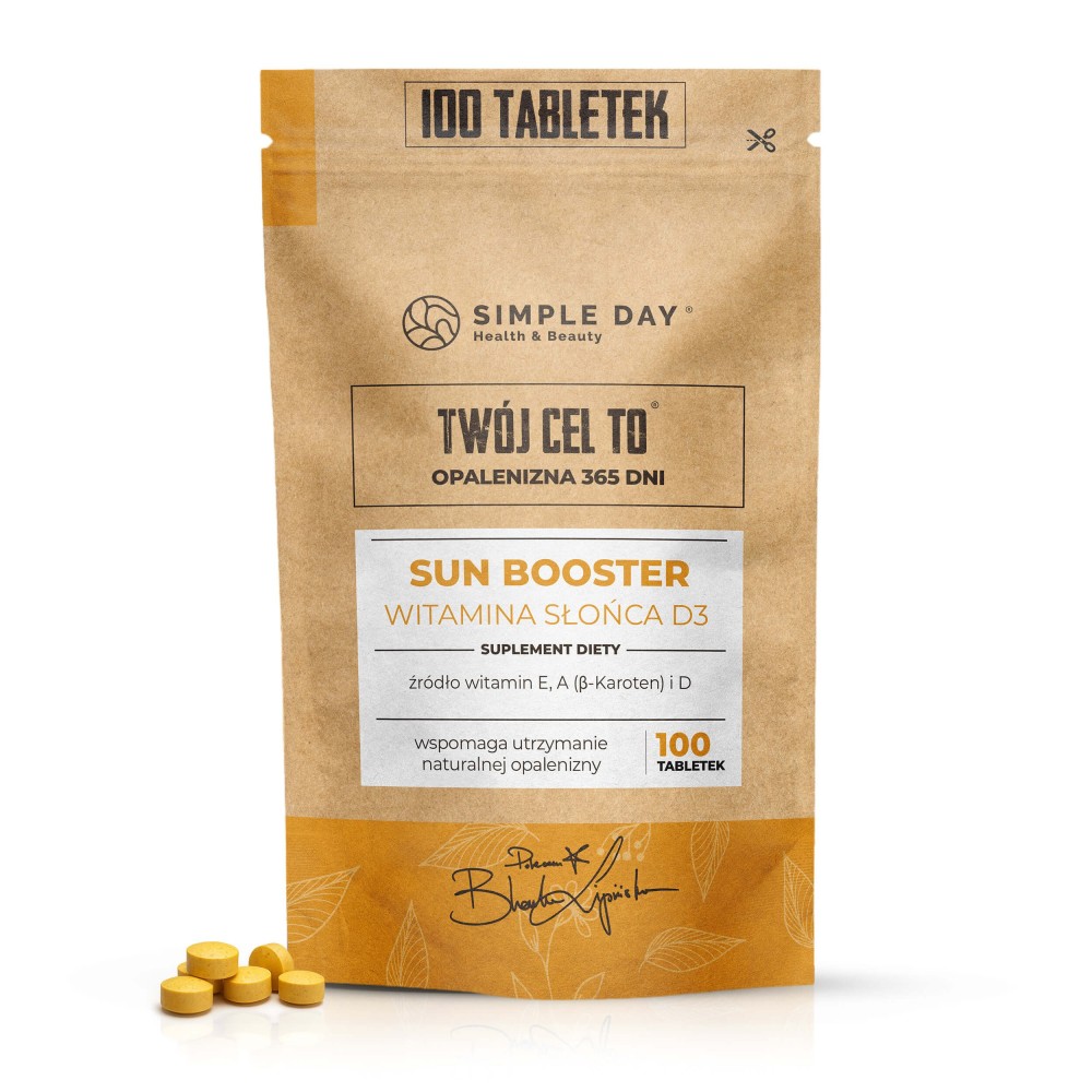 Sun Booster zawiera składniki wspierające skórę przy ekspozycji na słońce, a także witaminy, które pomagają w sezonie letnim.