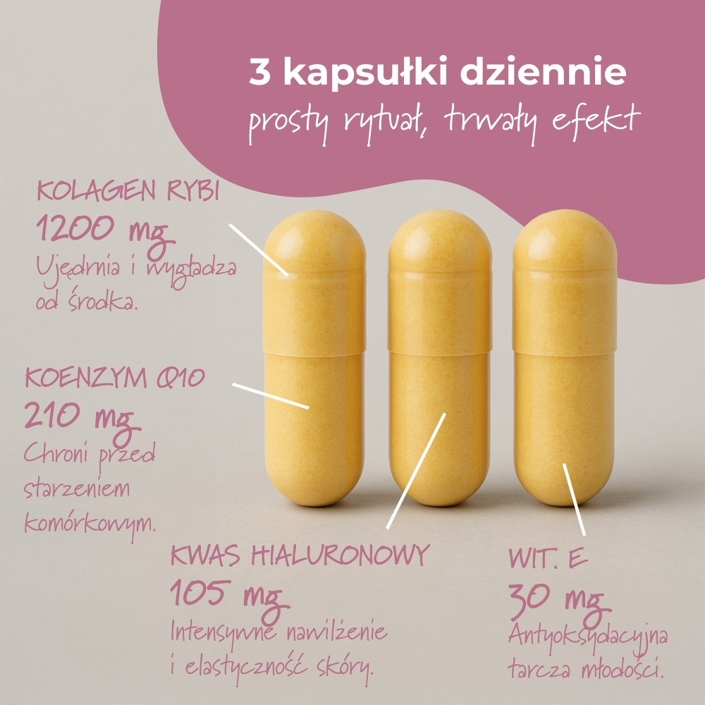 Większość klientek zauważa poprawę nawilżenia i napięcia skóry już po miesiącu. Jednak dla satysfakcjonującego efektu zalecamy suplementację przez 6 miesięcy.