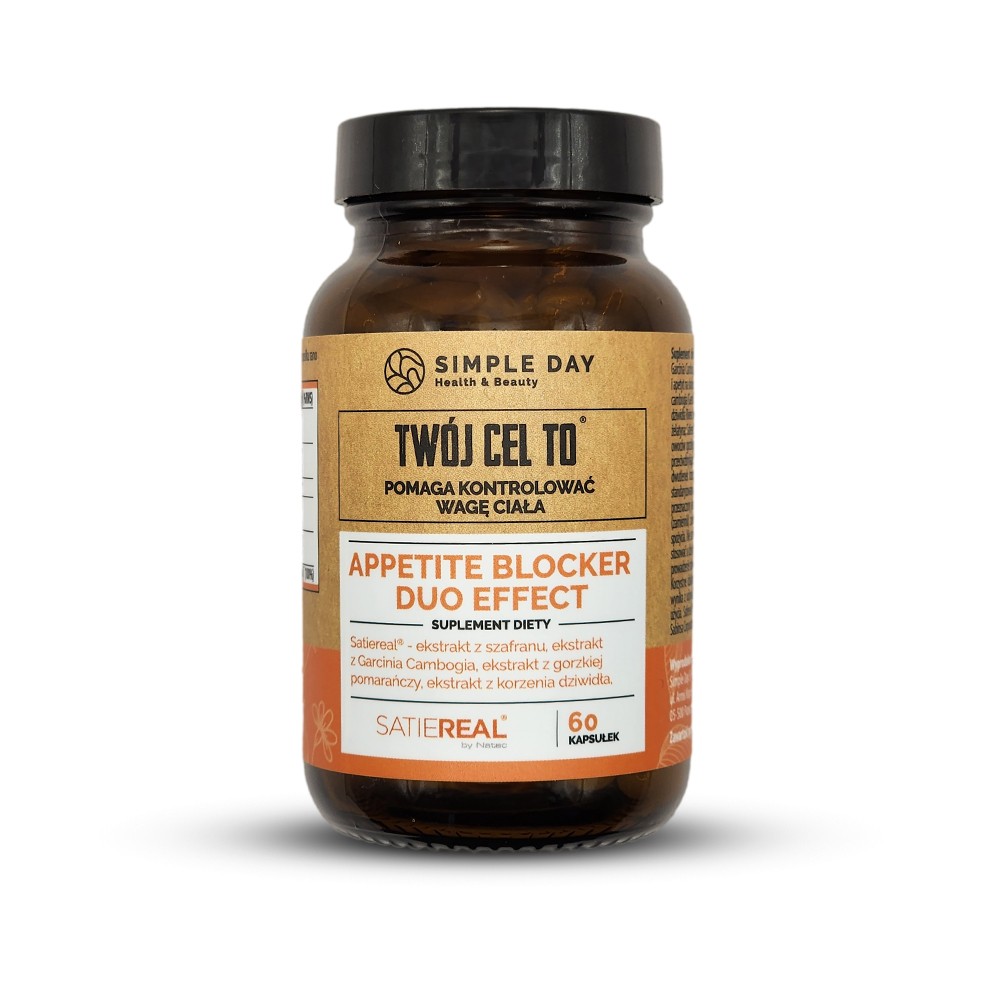 Appetite Blocker Duo Effect - to kompleks 6 składników aktywnych dobranych tak by optymalnie wpływać na zmniejszenie apetytu, uczucie głodu oraz częstotliwość podjadania przekąsek i słodyczy, a także spalanie tłuszczu oraz termogenezę. Suplement zawiera ekstrakt z Garcinia Cambogia oraz Satiereal, składniki które w dawkach przebadanych klinicznie mają działanie na zmniejszenie apetytu, uczucie głodu i chęć na słodycze. Opatentowany składnik Satiereal® to ekstrakt z szafranu w dużej dawce dziennej, który znacząco zmniejsza odczuwanie głodu, apetyt na słodycze oraz epizody podjadania między posiłkami. Dodatkowo w składzie znalazły się dwa składniki wspierające spalanie tłuszczu i termogenezę – synefryna (ekstrakt z owoców gorzkiej pomarańczy) oraz piperyna (ekstrakt z czarnego pieprzu), które uzupełnia glukomannan oraz chrom.