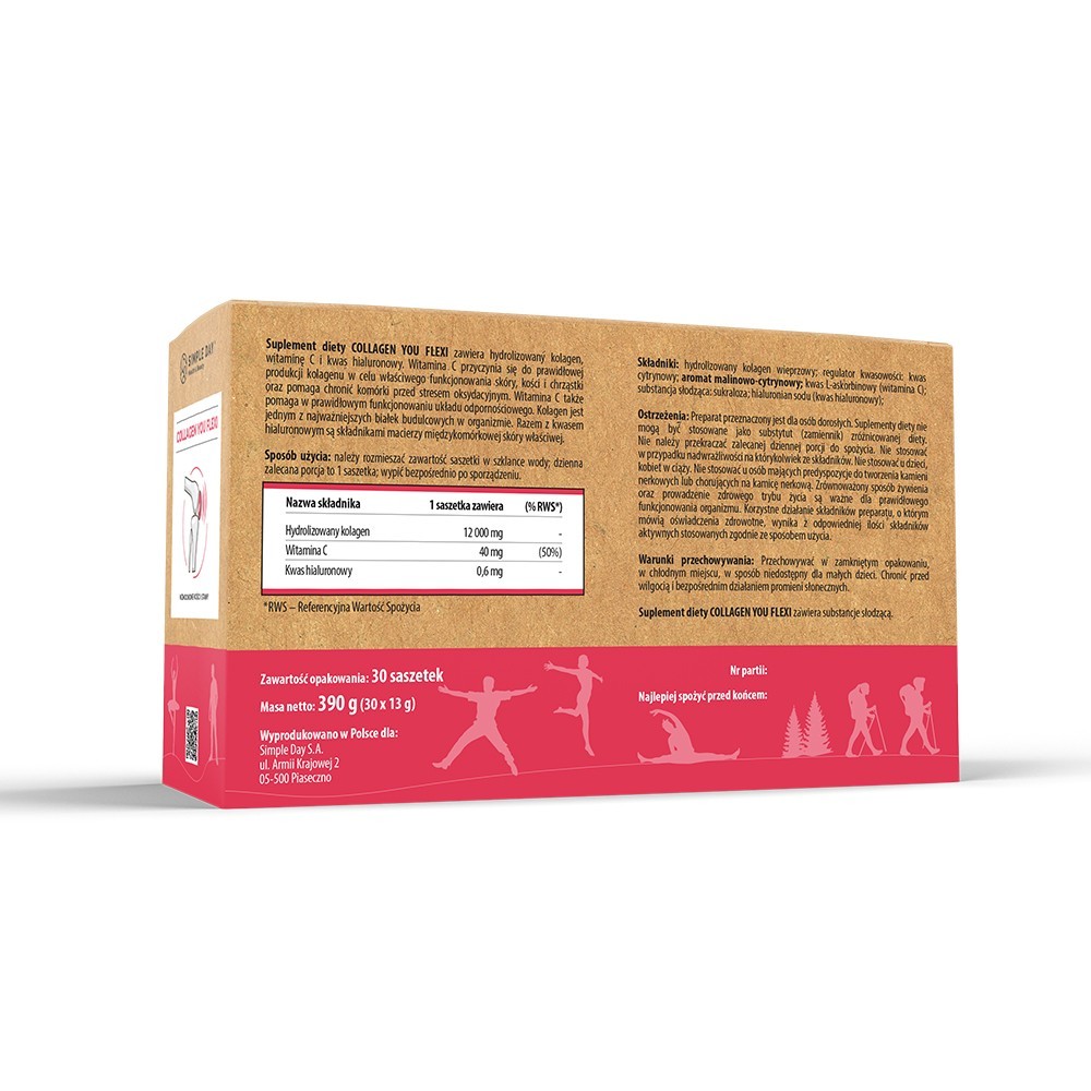 Collagen You Flexi - mobilność i zdrowie stawów Collagen You Flexi to suplement stworzony z myślą o aktywnych mężczyznach, którzy pragną zadbać o swoje stawy i kości. Zawiera specjalnie dobrane peptydy kolagenowe, które wspierają regenerację chrząstki stawowej, poprawiają elastyczność stawów oraz pomagają w utrzymaniu ich prawidłowej funkcji. Regularne stosowanie tego kolagenu zapewnia wsparcie dla Twojego aparatu ruchu, pomagając Ci w pełni cieszyć się aktywnym trybem życia – bez bólu i ograniczeń.