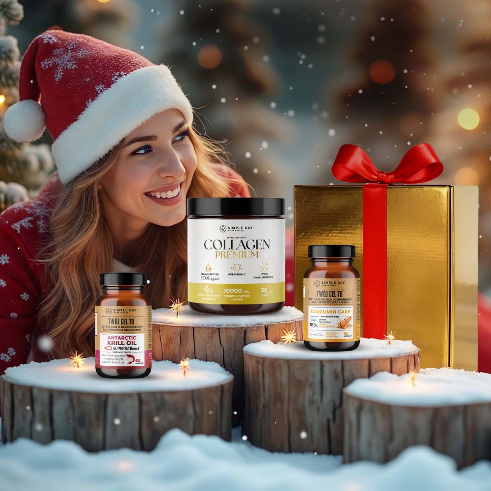 Elegancki, starannie skomponowany zestaw trzech produktów klasy premium, zapakowany w złoty karton. To propozycja dla osób ceniących wysokiej jakości suplementy oraz codzienną rutynę dbania o ciało od środka. Połączone w jednym zestawie: Collagen Premium, Antarctic Krill Oil oraz Curcumin Care, tworzą uniwersalny, całoroczny rytuał dla kobiet i mężczyzn. Idealnie sprawdzi się na prezent dla Ciebie i Twoich bliskich.